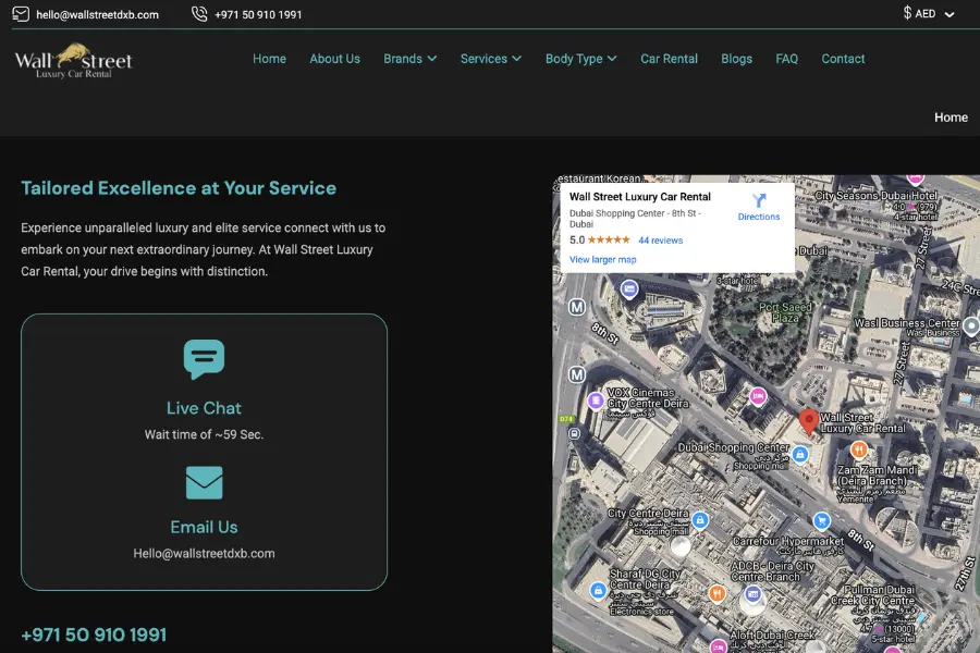 5. Contacting us Wall Street Luxury Car Rental